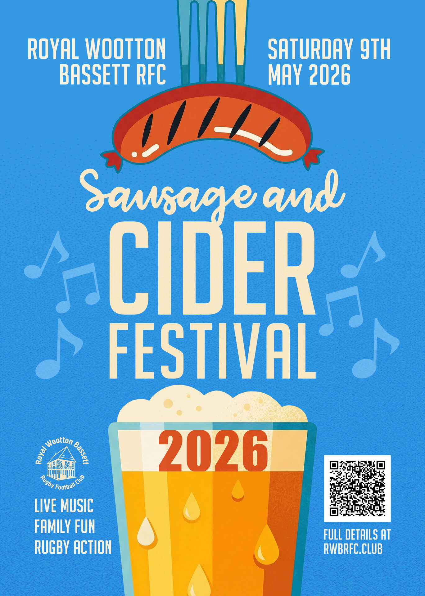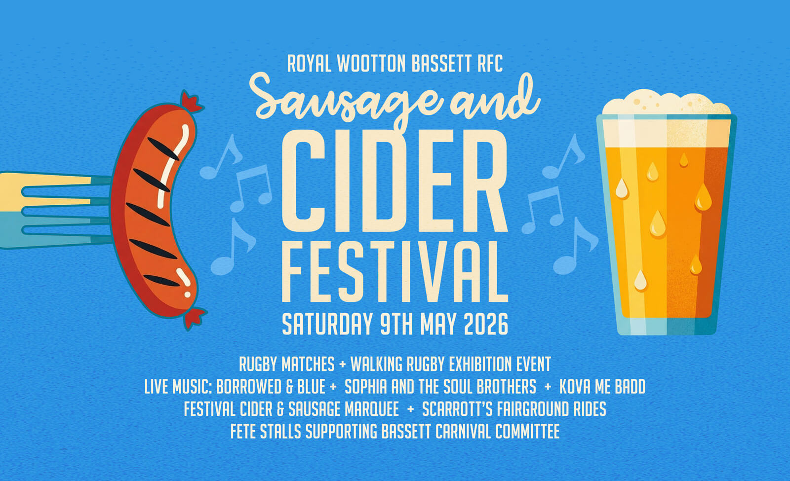 The annual Royal Wootton Bassett Sausage & Cider Festival is back at Royal Wootton Bassett RFC on Saturday 9th May, promising another brilliant day of rugby, live music, great food and family entertainment at Ballards Ash.